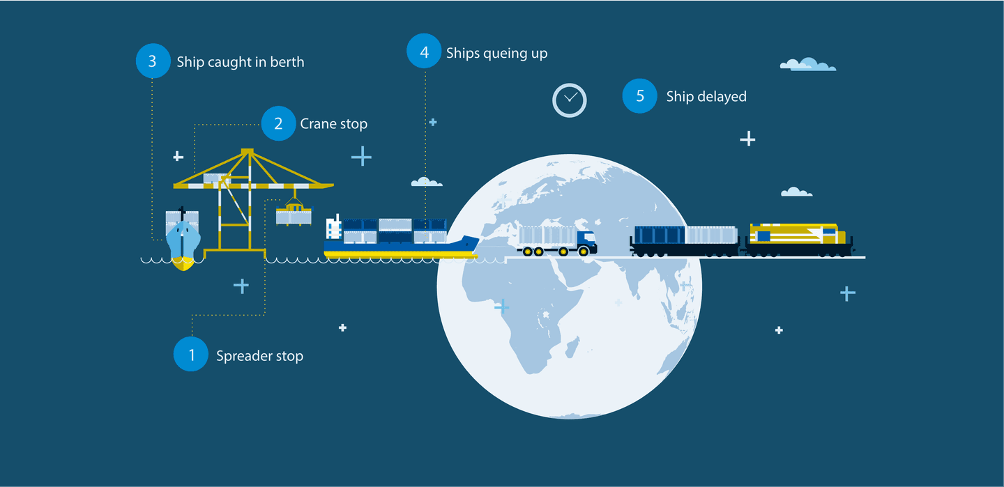 In ports, as in any other industry, equipment uptime is a key performance indicator. Approximately 30 to 50 percent of a crane’s downtime is spreader related: if the spreader fails, so will the crane. This can delay vessels at berth, leading to vessel queues outside the terminal. In worst-case scenarios, goods will be damaged or delayed and safety compromised through poor loading. Bromma wanted to explore the possibilities of using data to minimize these risks. Could modern technology make spreaders intelligent and help keep them up and running?