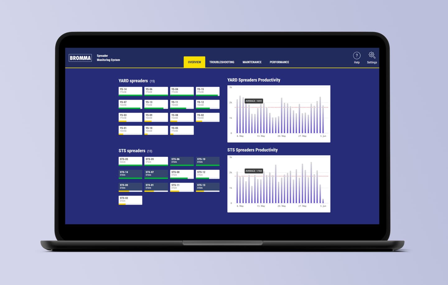 • A clear, remote view of the historic and real-time performance of the spreader fleet